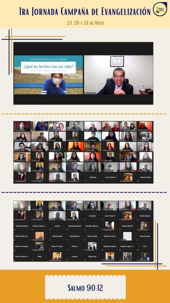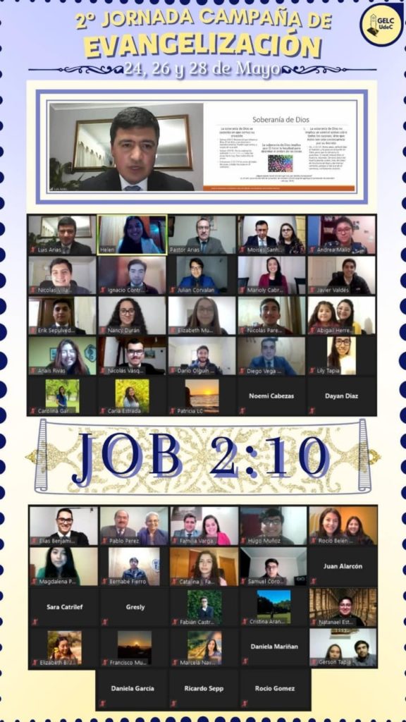 La semana de 24 de mayo, tuvimos la oportunidad de desarrollar una semana de evangelización con la invitación de toda nuestra zona Región del Bio-Bio, además, tuvimos en nuestro medio virtual, a Pastores como expositores de la palabra de Dios. Dichas reuniones fueron muy asistidas, llegando a uno de los días a 100 participantes aproximadamente. La temática de la semana fue “La Soberanía de Dios y sus implicaciones”.